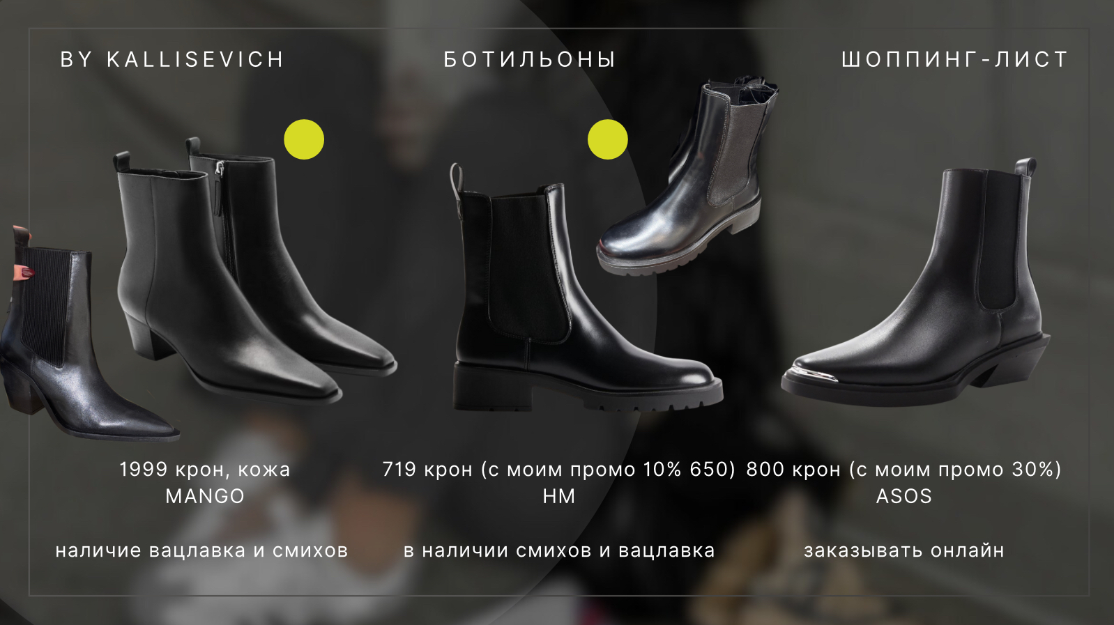 Если шоппинг осень/зима, то возьмите с собой черные полупрозрачные колготки